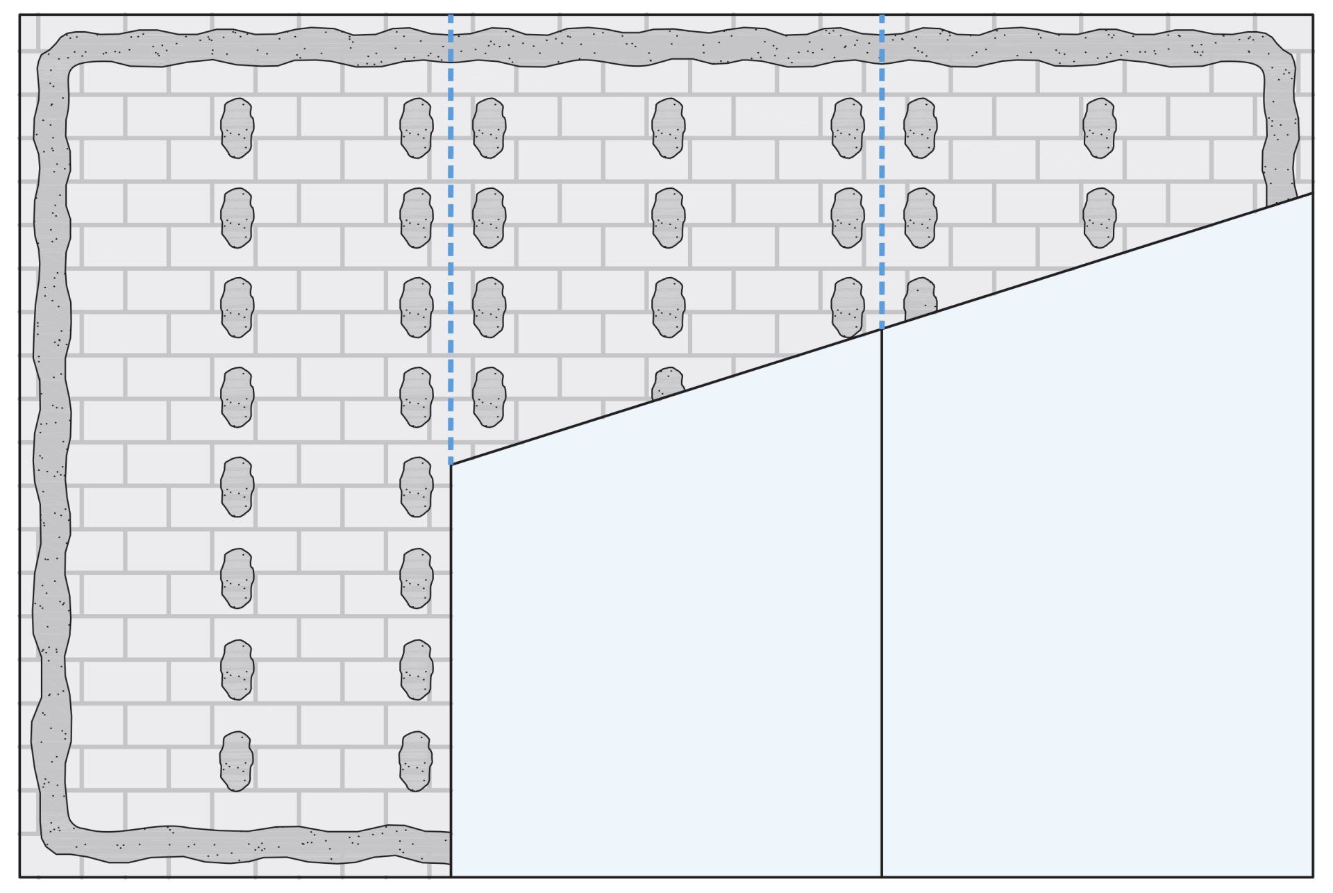 Im Trockenputzsystem W611.de werden Gipsverbundplatten mit EPS Dämmstoff als Innendämmung in Abhängigkeit vom Untergrund in unterschiedlichen Ansetzarten aufgebracht.