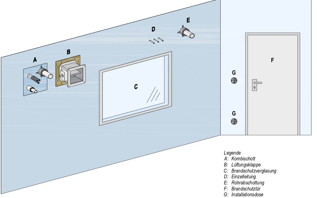 Durchführung mehrerer Leitungen Abschottungssysteme bei leichten Trennwänden und Schachtwänden